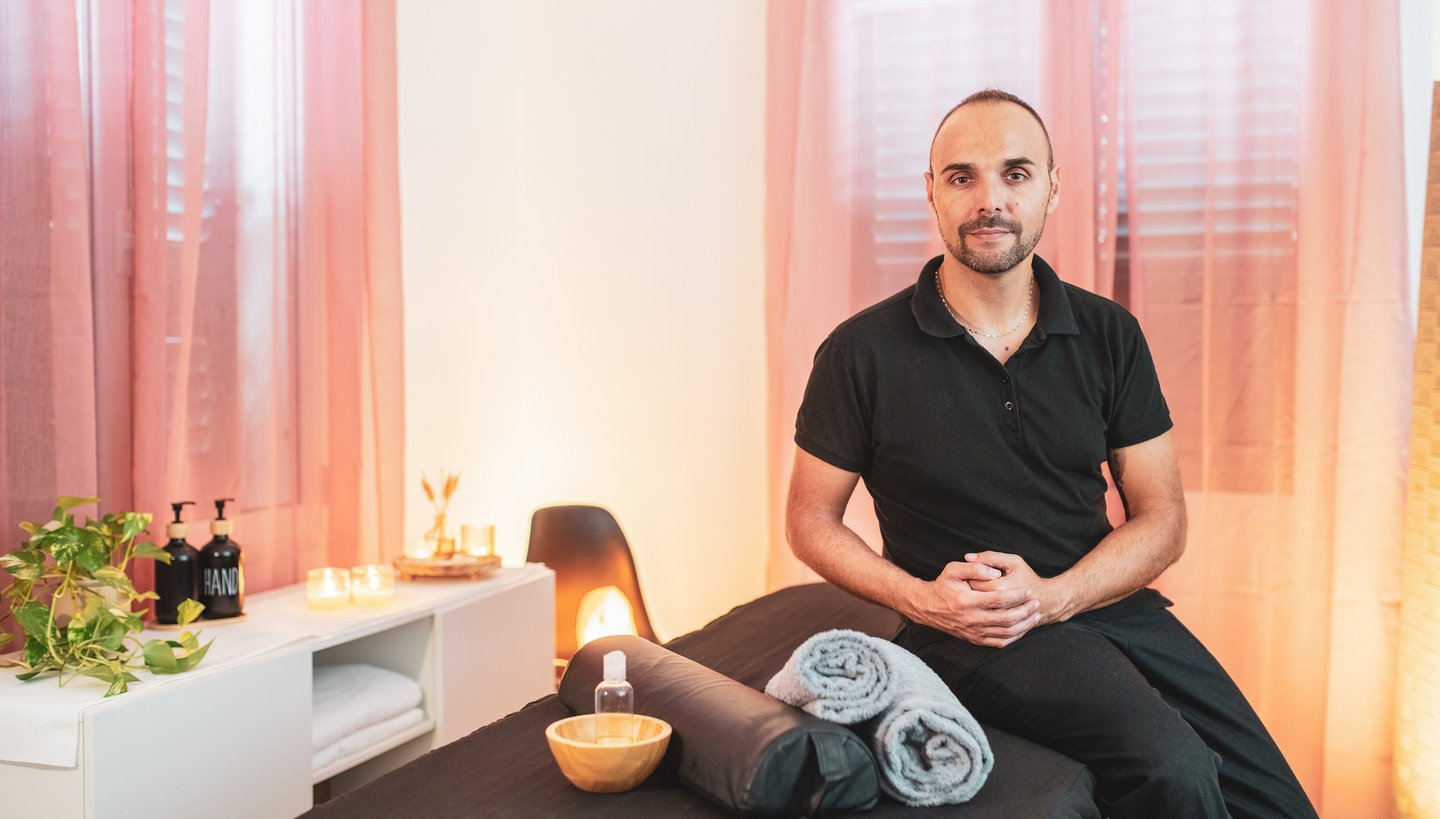 Ciao, sono Massimo, massaggiatore professionista. Il mio lavoro è aiutare le persone a ritrovare relax, energia e benessere grazie a trattamenti mirati. Ogni massaggio è pensato su misura, perché ognuno di noi ha bisogni diversi: che tu cerchi sollievo dalle tensioni o semplicemente un momento di relax, qui troverai lo spazio giusto per te.